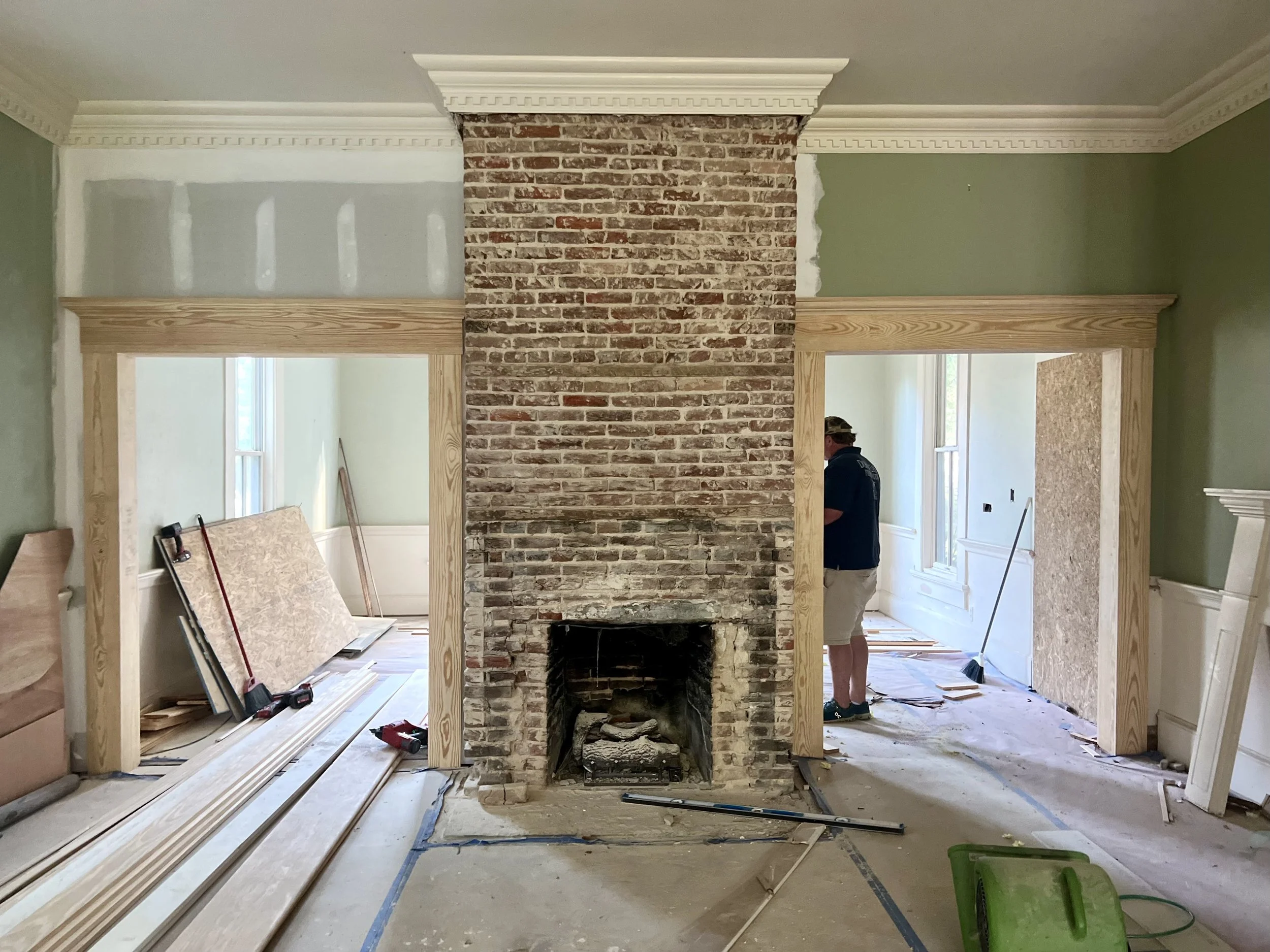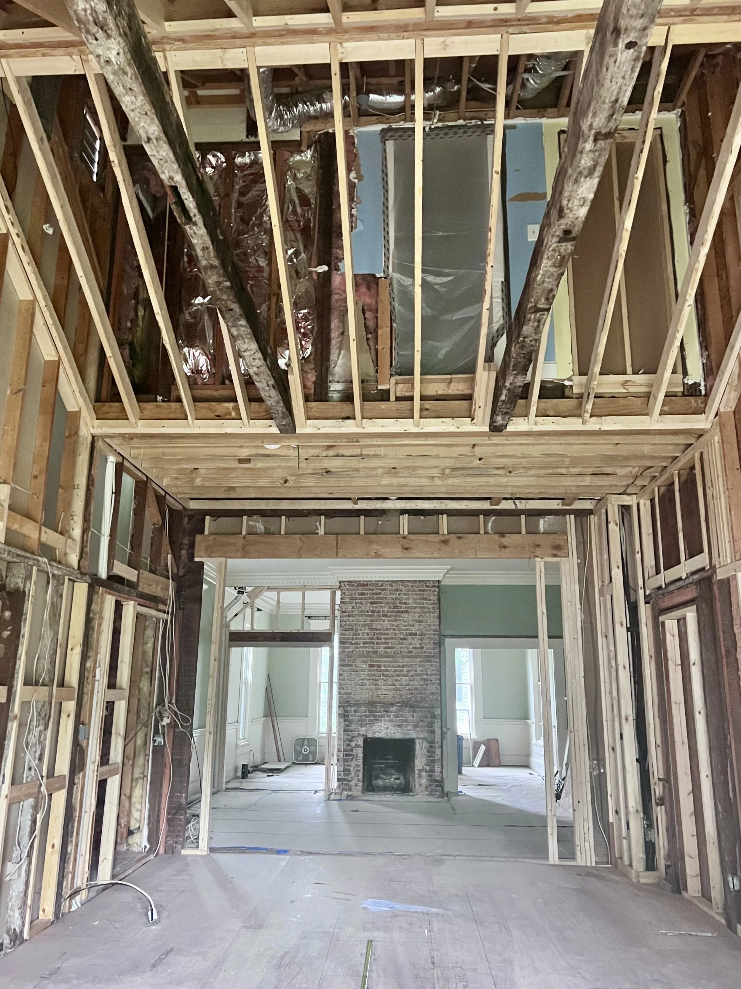 This historic 1879 Victorian home in downtown Edenton got a stunning interior transformation that blends timeless character with modern comfort. Down East Preservation opened up a once-cramped layout by removing walls and raising ceilings—revealing, in the process, an 18th-century smokehouse hidden within the kitchen structure. We preserved and repurposed the original beams, using them to create vaulted ceilings and warm architectural accents.